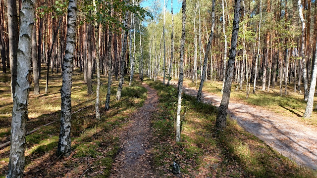 Mazowiecki Park Krajobrazowy - lasy Wawerskie koło Michalina. I ciekawy pomnik lotników alianckich co polegli niosąc pomoc Powstaniu 1944.